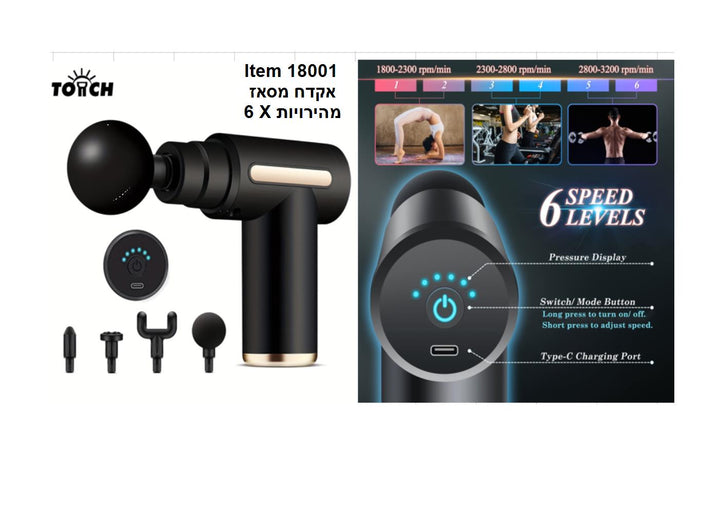 אקדח מסאגר 30W 1800mAh עם 4 ראשים 6 מהירויות Type C
