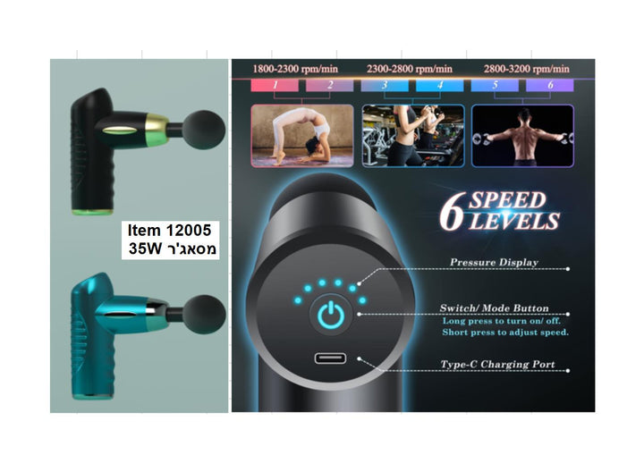 אקדח מסאגר 35W 2000mAh עם 4 ראשים 6 מהירויות Type C