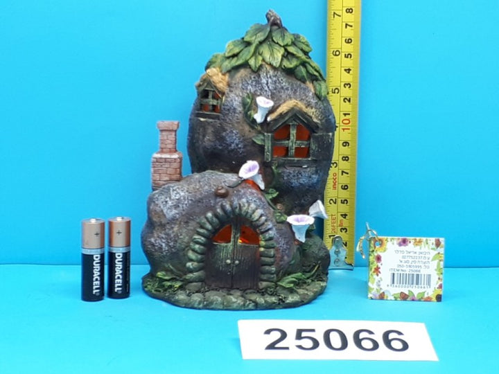 בית גמדים אפור עם תאורת לד פנימית, לא כלול 2 סוללות AA