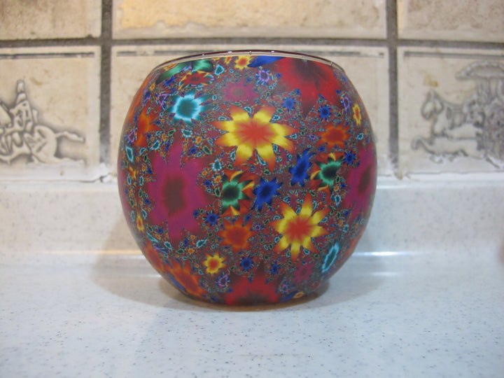 כדור זכוכית FIMO לתאורת נר דולק / פרחים צבעוני