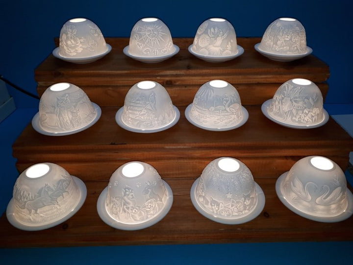 כוס פורצלן עם צלחת. מואר ע"י נר דולק.