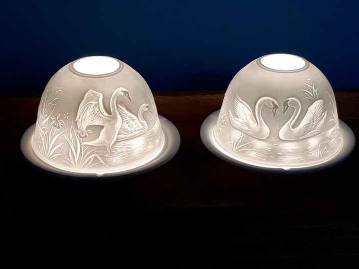 כוס פורצלן עם צלחת מואר ע"י נר דולק / ברבורים