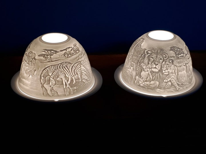 כוס פורצלן עם צלחת מואר ע"י נר דולק / חיות ספארי