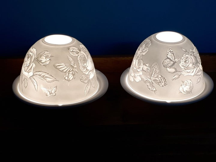 כוס פורצלן עם צלחת מואר ע"י נר דולק / פרפרים