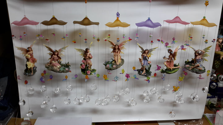 מובייל פיות/ילדים עם 5 כדורי קריסטל וקישוטים אקריליים בחוטי פלדה.