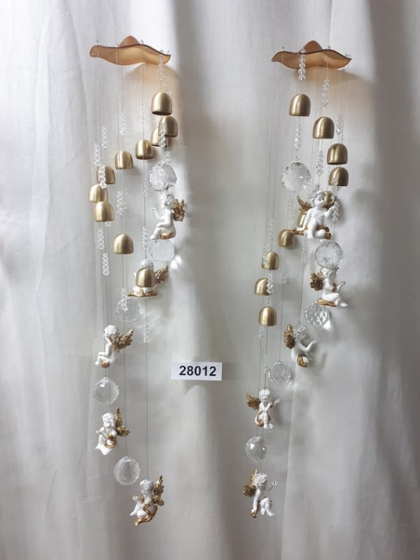 מובייל תליה 5 קופידון כנפי זהב מדורג, 5 כדורי קריסטל ופעמוני מתכת
