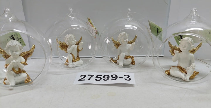 מלאך לבן כנפי זהב בכדור זכוכית לתליה 110 מ"מ