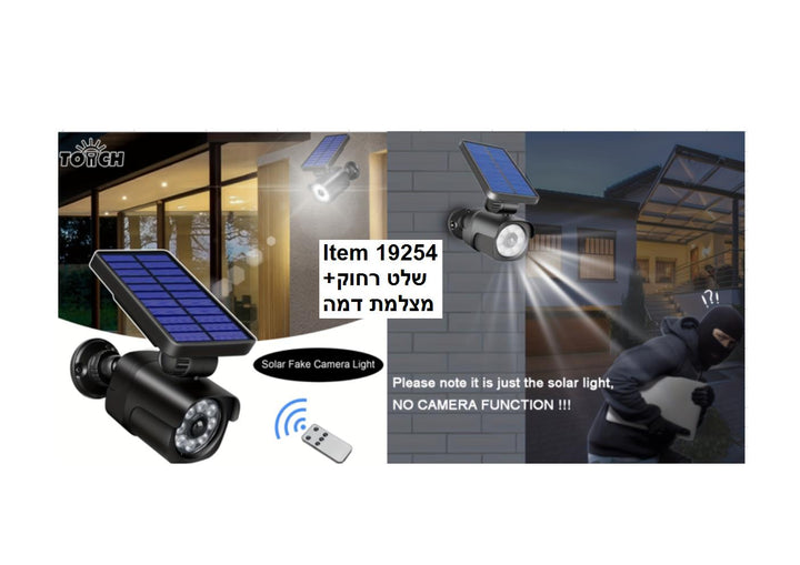 מנורה סולרית עם מצלמת דמה+ חישן נפח+ שלט רחוק