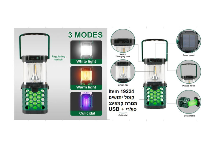 מנורת קמפינג קוטל יתושים סולרי + נטען TYPE C +אור קר וחם