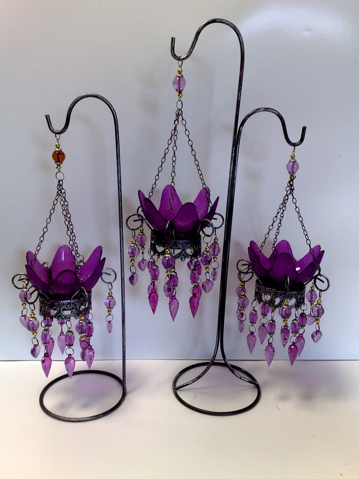 מעמד מתכת כפול עם זכוכית לנר