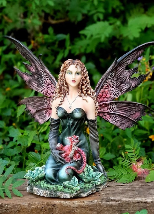 פיית תלתלים יושבת עם דרקון אדום