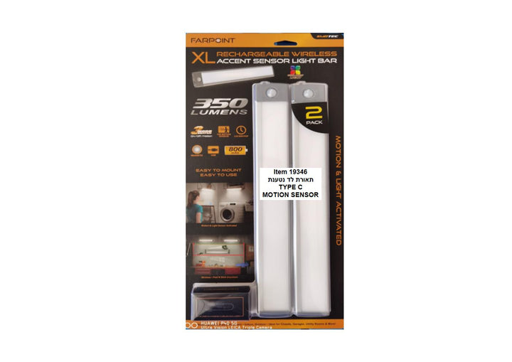 פס תאורת לד נטען TYPE C עם סנסור 325*43*12 מ"מ