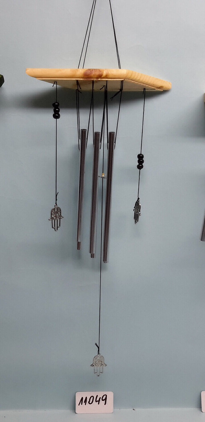 פעמון רוח מתכת ראש מעויין עם תליוני חמסה