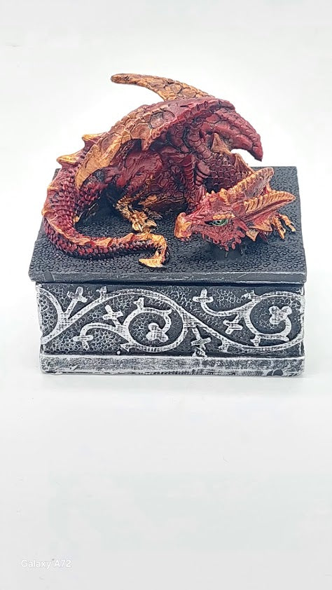 קופסת תכשיטים מלבנית עם דרקון כתום מעל