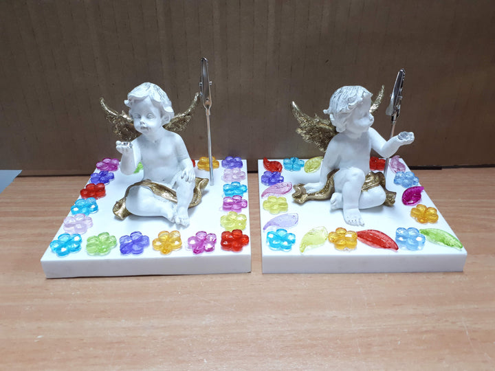 קליפס מלאך לבן על בסיס שיש עם קישוטים