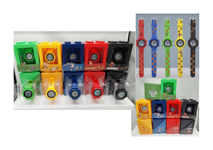 שעון יד דיגיטלי עם רצועה מודפסת בכדורסל במארז קופה מהודר