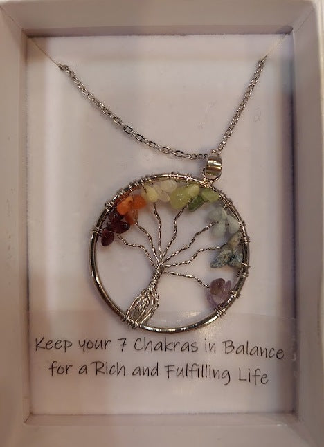 שרשרת תליון צ'אקרת עץ החיים עם קריסטלים לאיזון ומיצוי החיים