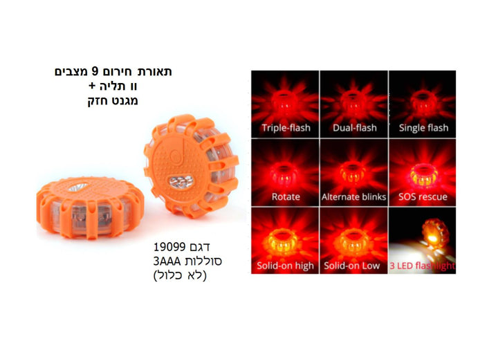 תאורת חירום 9 מצבים + מגנט+ וו תליה (סוללה 3AAA לא כלול)
